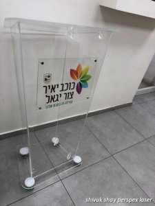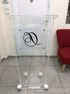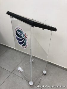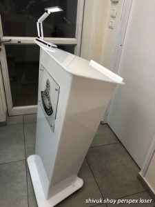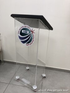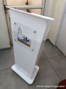 ייצור פודיום לבחירה: מפרספקס שקוף או לבן , עץ.